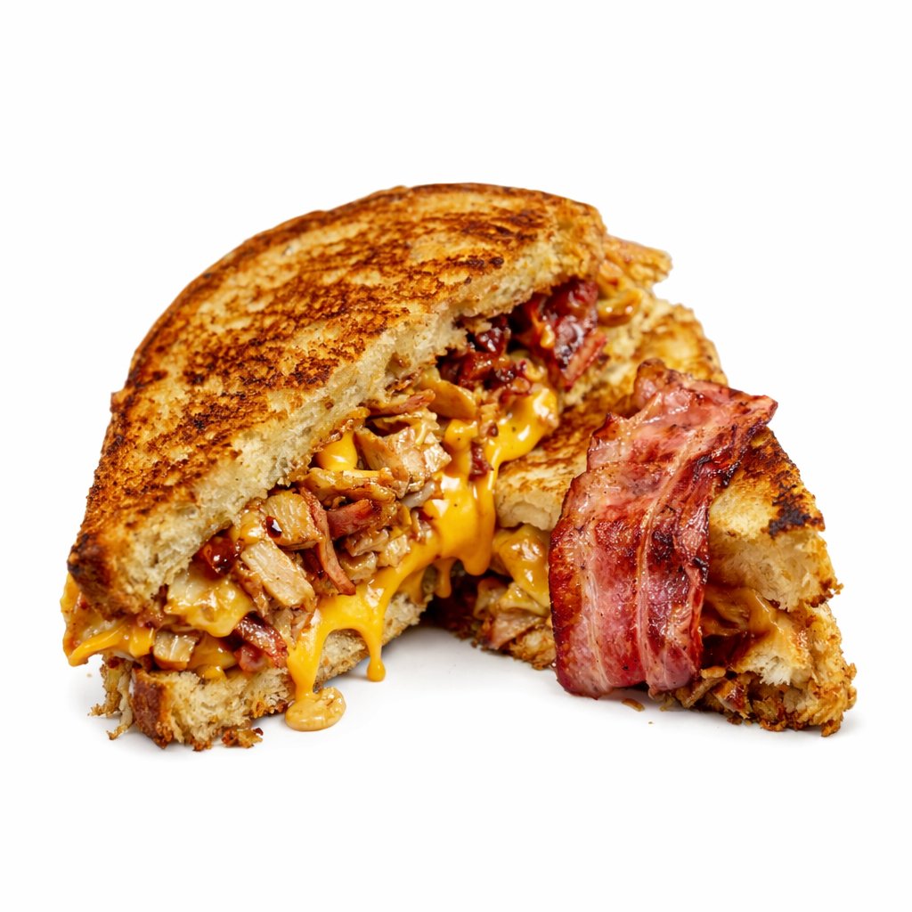 Toast narvanej gyros masem, slaninou a trojitým cheddarem.