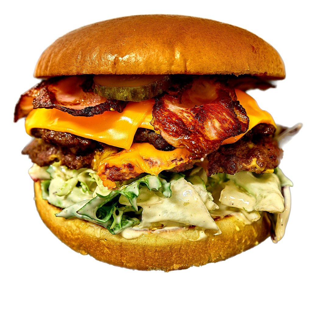 Dvojitý smash maso, trojitý cheddar a slanina v bulce se salátkem s pepřovou omáčkou. Jeden z těch, ke kterým se vracíš.